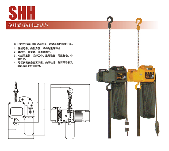 SHH型倒掛環(huán)鏈電動(dòng)葫蘆技術(shù)參數(shù)圖: